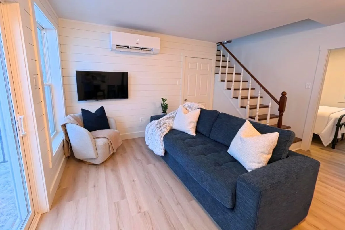 You will have a private entry from the front of the building. Entering the unit, the main living space provides everything you need for an easy stay. Including an open concept living area, a fully equipped kitchen, in-suite washer/dryer, and a comfortable setup that feels like your home-away-from-home.